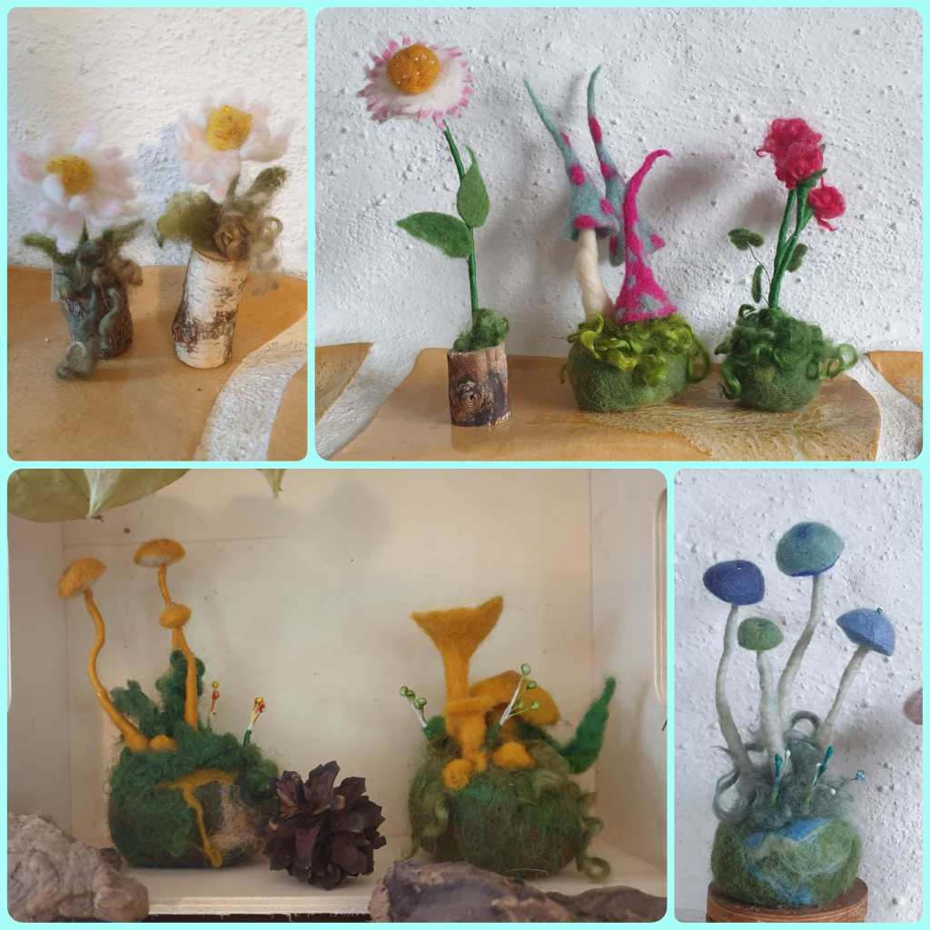 Am Hof leben mitunter drei Schafe. Diese liefern neben wertvollem Dünger für den Gemüseanbau auch die Wolle für meine Filzprodukte. Sie werden einmal jährlich geschoren, dann wasche ich die Wolle, färbe einen Teil davon und lasse sie kardieren. In vielen winterlichen Stunden entstehen meine Filzunikate, welche auf diversen Märkten käuflich zu erwerben sind. Gerne filze ich auch auf Auftrag.