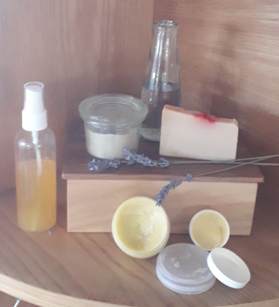 Themen des Tages sind: Hydrolat, Creme, Salbe, Zahnpulver, Deo, Lippenbalsam, Seife und Badeherzen herstellen.